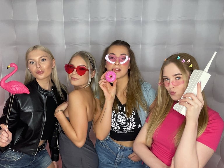 Vidinis apšvietimas sukuria užvedančią atmosferą, o kartu su didžiuliu asortimentu šmaikščios atributikos, Jūsų svečiai gali smagiai ir kūrybiškai kurti akimirkas ir praleisti laiką foto kabinoje.
